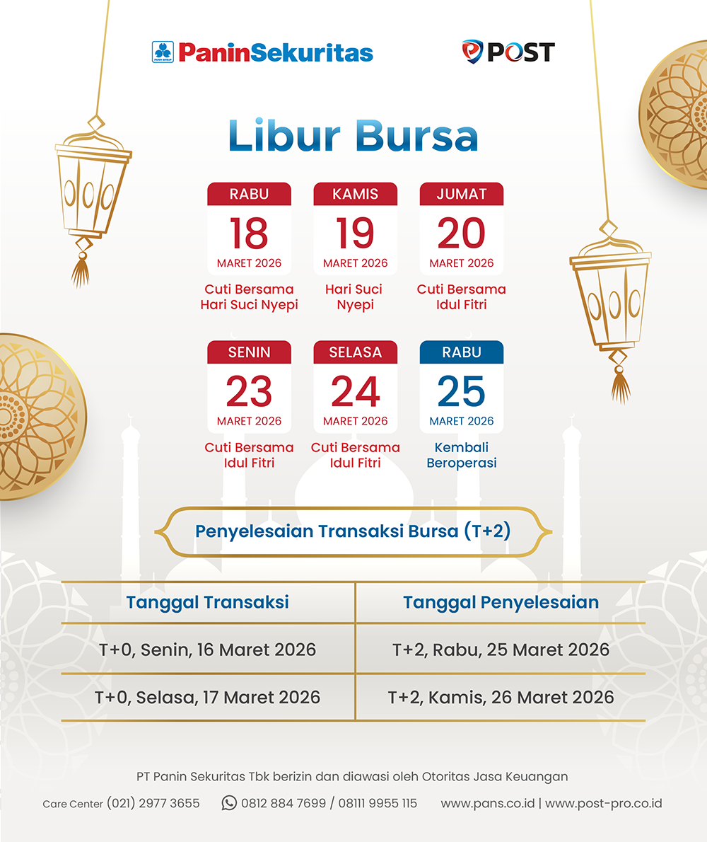 Berdasarkan Kalender Libur Bursa Tahun 2026 yang dikeluarkan oleh Bursa Efek Indonesia terkait menyambut Hari Suci Nyepi Tahun Baru Saka 1948 dan Hari Raya Idul Fitri 1447 Hijriah , berikut kami informasikan waktu operasional Panin Sekuritas: