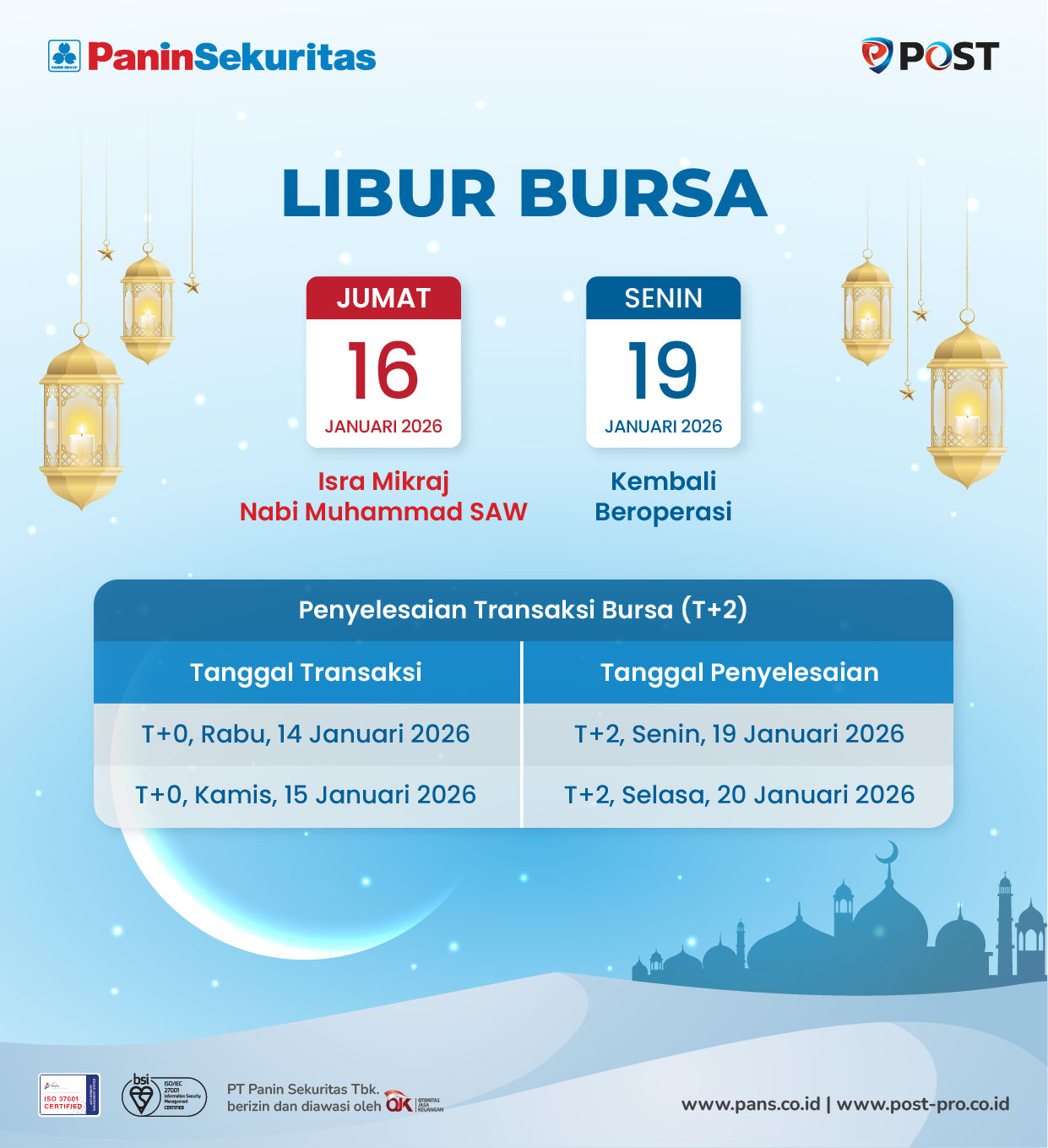 Simak jadwal operasional Panin Sekuritas selama libur bursa Hari Isra Mikraj Nabi Muhammad SAW 2026: